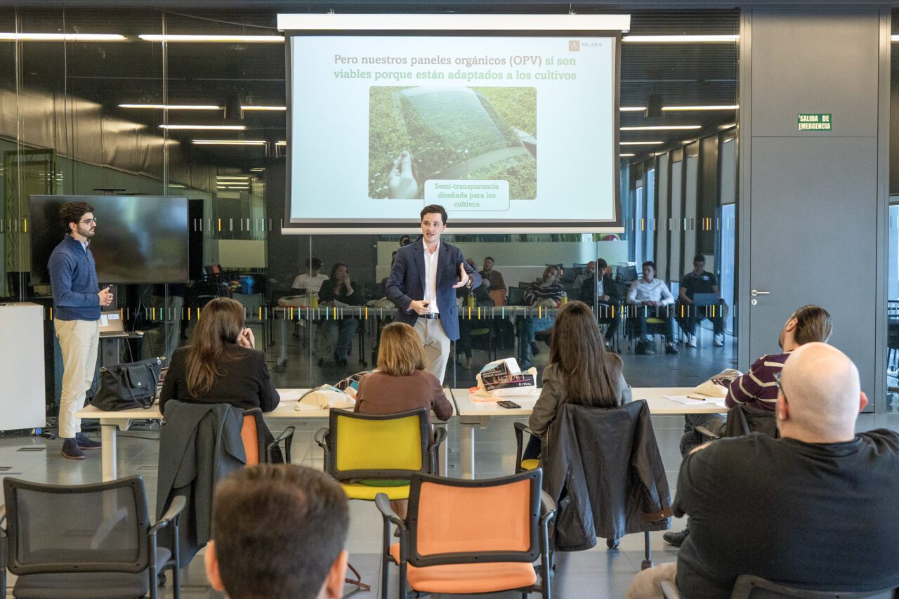 El segundo puesto del Demo Day ha sido para Solaris Vita, startup que está desarrollando una tecnología fotovoltaica adaptada a los cultivos de manera que sus paneles solares dejan pasar la luz que necesitan las plantas a la vez que generan electricidad. “Esto permite a los agricultores que tienen invernaderos reducir sus facturas de la luz mes a mes sin afectar a su día a día, que es el desarrollo de sus cultivos”, ha explicado Miguel Iglesias, CEO y fundador de la empresa. “Empezamos en el Programa de incubación de La Nave, dimos el salto a aceleración y las sesiones y mentorías que estamos recibiendo nos están haciendo crecer muchísimo. De hecho, gracias a un contacto generado aquí, vamos a hacer un piloto con la Universidad Politécnica de Madrid para validar nuestra tecnología y seguir avanzando hasta llegar a mercado”.